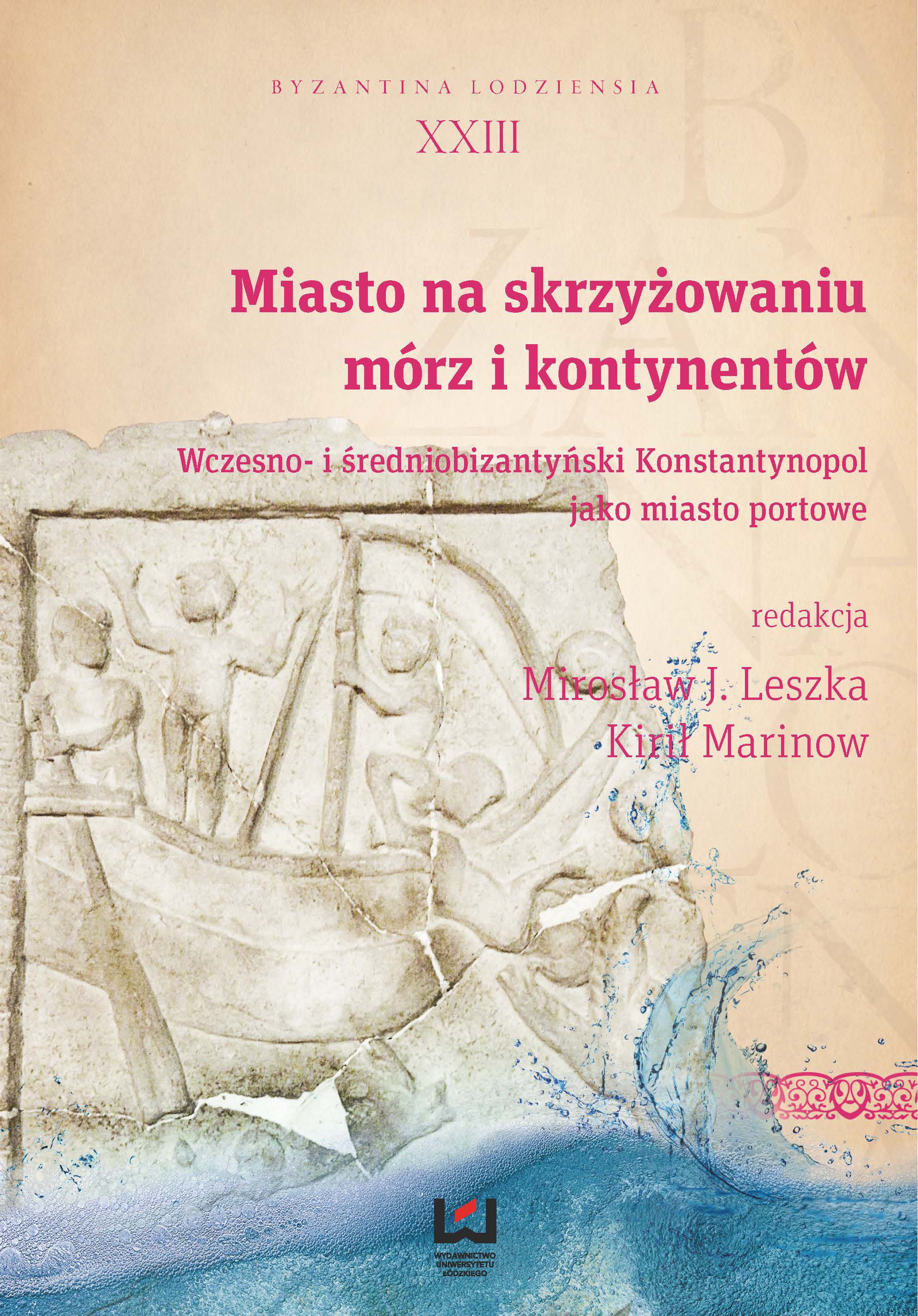 Konstantynopol to miasto szczególne, tak ze względu na wyjątkowe miejsce w dziejach średniowiecznego świata, jak i walory swego geograficznego położenia. Usytuowane malowniczo nad zatoką Złotego Rogu, Bosforem i morzem Marmara od swoich początków, jeszcze jako Bizancjum związane było z morzem. Szczególnie uwidoczniło się to w czasach, kiedy stało się ono centrum państwowości wschodniorzymskiej, wielką aglomeracją, zamieszkiwaną przez setki tysięcy ludzi. Wówczas gros zaopatrzenia żywnościowego, materiałów budowlanych, ale i np. dóbr luksusowych docierało drogą morską i wyładowywanych było w konstantynopolitańskich portach. Drogą morską przybywali do Miasta w różnych celach także ludzie: posłowie, kupcy, duchowni, pielgrzymi, ci, którzy marzyli o zrobieniu kariery i ci, którzy na cesarskim dworze dobijać się chcieli sprawiedliwości. Właśnie związkom Konstantynopola z morzem poświęcona została prezentowana książka.